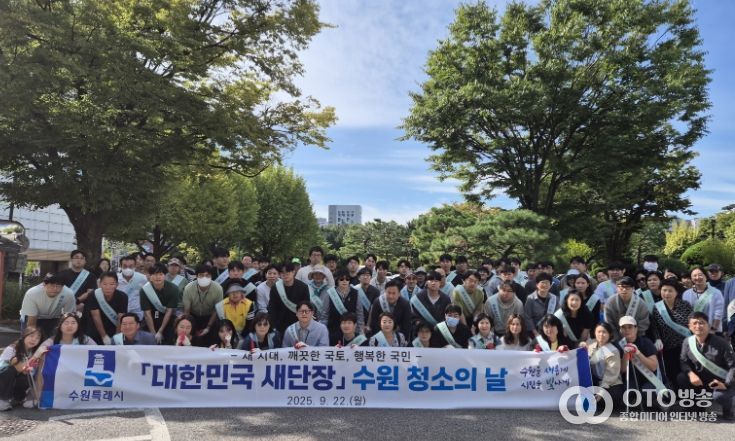 oto방송 김민석 기자 | 수원시가 정부의 ‘대한민국 새단장 주간(9월 22일~10월 1일)’에 맞춰 22일 ‘수원 청소의 날’ 행사를 열고, 수원시청 인근 인계동 일대를 청소했다.