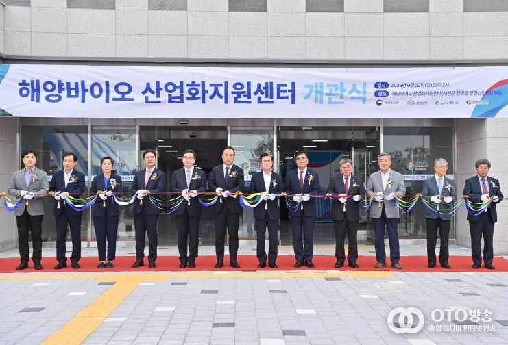 도에 따르면, 해양바이오 산업화지원센터 개관식이 22일 서천 장항국가생태산업단지 서해권역 해양바이오 클러스터에서 김태흠 지사 등 150여 명이 참석한 가운데 개최됐다.