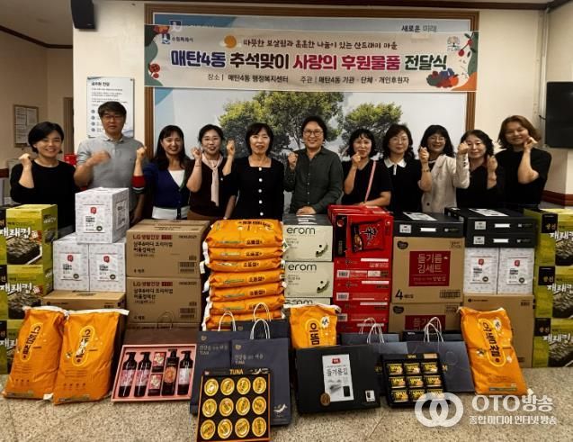 oto방송 김민석 기자 | 수원시 영통구 매탄4동 행정복지센터는 민족 고유 명절인 추석을 맞아 관내 어려운 이웃에게 따뜻한 마음을 전하는 ‘추석맞이 사랑의 후원물품 전달식'을 개최했다.