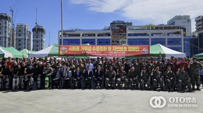 oto방송 김민석 기자 | 해병대시흥시전우회는 지난 9월 21일 거북섬마리나 일원에서 수중ㆍ수변 정화 활동과 자연보호 캠페인을 실시했다. 이번 행사에는 해병대시흥시전우회뿐만 아니라 경기도 각 시군 해병전우회 회원들과 시흥도시공사 직원들도 참여해 정화 활동을 지원했다.