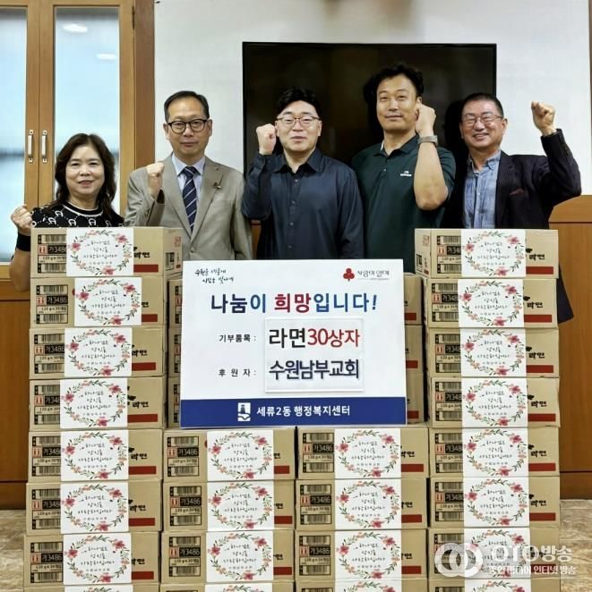 oto방송 김민석 기자 | 수원시 권선구 세류2동 소재 수원남부교회는 지난 23일, 지역 내 취약계층을 위해 라면 30상자를 세류2동 행정복지센터에 기부했다.