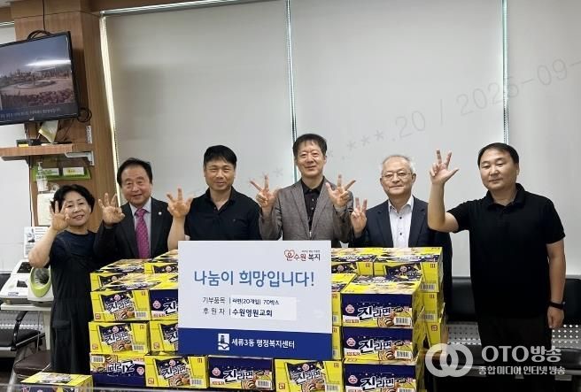 oto방송 김민석 기자 | 수원영원교회는 지난 22일, 추석 명절을 맞이하여 관내 취약계층을 위해 세류3동 행정복지센터에 라면(20개입) 70박스를 후원하며 이웃사랑 나눔을 실천했다.