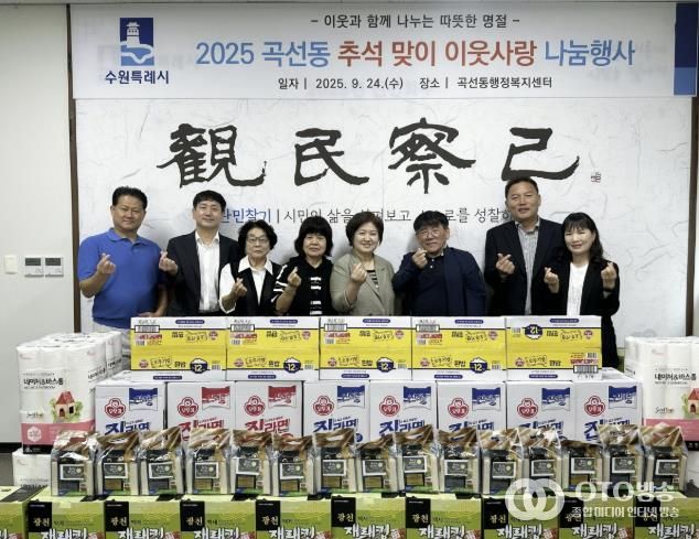 이번 나눔은 주민자치회, 새마을문고회, 마을만들기협의회, 통장협의회, 새마을지도자협의회, 방위협의회, 새마을부녀회, 새수원오뚜기, 하나로마트(곡반정점), 수원농협 곡선지점, (주)원천환경, 개인 등 지역사회 단체 외 주민들의 자발적인 후원으로 마련됐으며, 전달식에서 모인 성품과 성금은 관내 취약계층과 홀몸어르신 등 소외된 이웃들에게 전달될 예정이다.