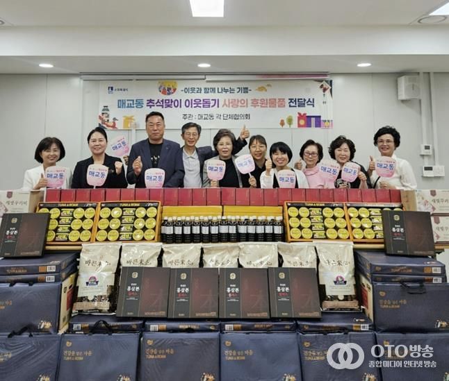 oto방송 김민석 기자 | 지난 24일 수원시 팔달구 매교동행정복지센터는 추석 명절을 맞이하여 관내 소외되는 어려운 이웃이 없도록 추석 명절 맞이 사랑의 후원물품 전달식을 가졌다.