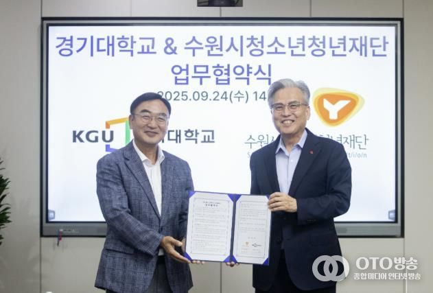 oto방송 김민석 기자 | 수원시청소년청년재단과 경기대학교는 9월 24일, 경기대학교 총장실에서 청소년과 청년의 상호 성장을 지원하기 위한 업무협약(MOU)을 체결했다.