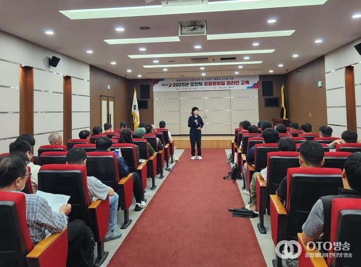 oto방송 김민석 기자 | 오산시는 지난 24일 오산시 환경사업소 홍보관에서 2025년 공중화장실 관리인 교육을 실시했다고 밝혔다. 이번 교육은 '오산시 공중화장실 등의 설치 및 관리 조례' 개정 이후 지난해에 이어 두 번째로 마련됐다.