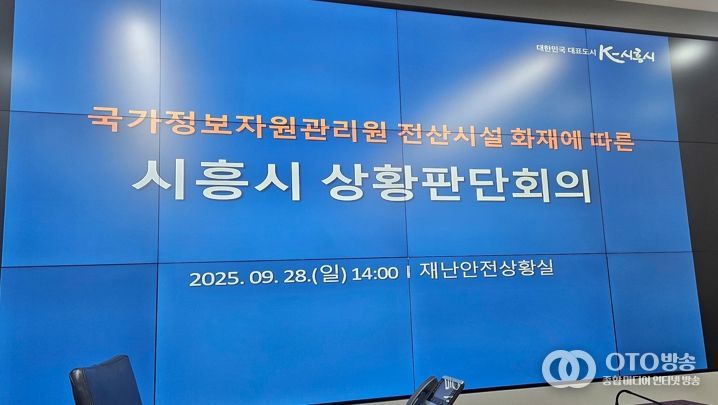 oto방송 김민석 기자 | 시흥시는 지난 26일 대전 소재 국가정보자원관리원에서 발생한 화재로 행정정보시스템에 장애가 전국적으로 확산하면서 시민 불편을 최소화하기 위해 28일 오후 2시, 시흥시 재난안전상황실에서 안전교통국장 주재의 상황판단회의를 통해 ‘재난안전대책본부’를 구성하고 비상 대응체계를 가동했다.