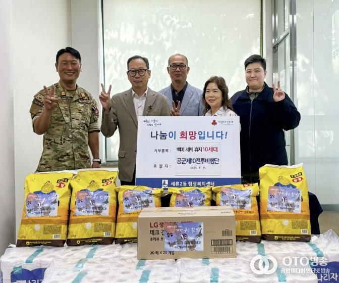 oto방송 김민석 기자 | 수원시 권선구 세류2동에 위치한 공군 제10전투비행단은 지난 25일, ‘소음영향지역 지역 나눔 물품’을 기부했다.