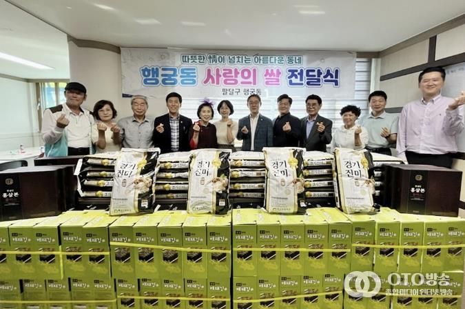oto방송 김민석 기자 | 지난 26일 수원시 팔달구 행궁동은 추석 명절 이웃돕기 후원 ‘행궁동 사랑의 후원 물품 전달식’을 개최했다. 전달식에는 행궁동 취약계층을 위해 힘을 모아 후원 물품을 기부한 행궁동 주민자치회 등 단체장들과 후원자들이 참석하여 나눔의 정을 함께했다.