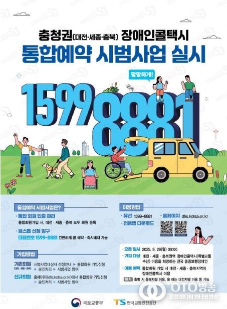 oto방송 김민석 기자 | 국토교통부와 한국교통안전공단은 중증 보행 장애인이 특별교통수단(장애인콜택시) 을 더욱 편리하게 이용할 수있도록 특별교통수단 통합예약시스템을 개발하여 9월 29일부터 대전 ‧세종 충북에서 시범운영에 들어간다.