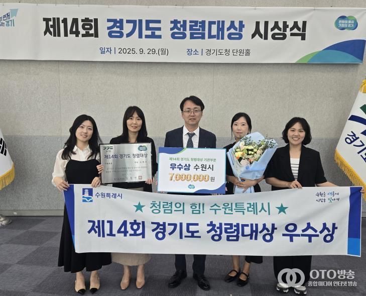 oto방송 김민석 기자 | 수원특례시가 제14회 경기도 청렴대상에서 우수상으로 선정됐다. 시상식은 29일 경기도청 단원홀에서 열렸다.