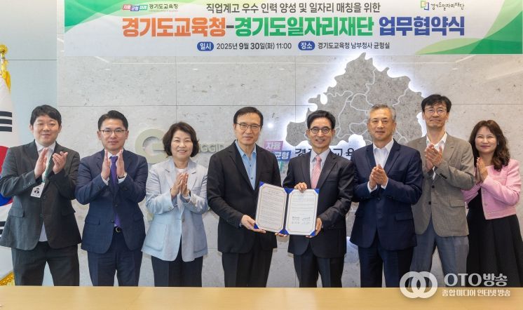 oto방송 김민석 기자 | 경기도교육청이 30일 남부청사에서 경기도일자리재단과 도내 직업계고 학생의 성공적 사회 진출 및 일자리 창출을 위한 업무 협약을 체결했다.