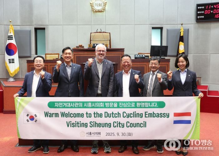 oto방송 김민석 기자 | 시흥시의회 도시환경위원회가 9월 30일 의회청사 소담뜰에서 네덜란드 자전거대사관(Dutch Cycling Embassy, DCE)을 초청해 간담회를 열고, 시흥시 자전거 정책 발전 방향과 친환경 교통 시스템 구축 방안에 대해 논의했다.