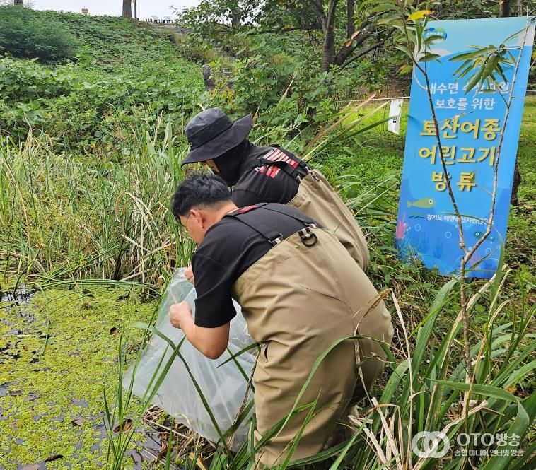oto방송 김민석 기자 | 경기도해양수산자원연구소가 토종 민물고기 종 보존과 하천 생태계 복원을 위해 경기도 보호 어종인 버들붕어 치어 1천 마리를 9월 30일 광주시 경안천습지생태공원에 방류했다.