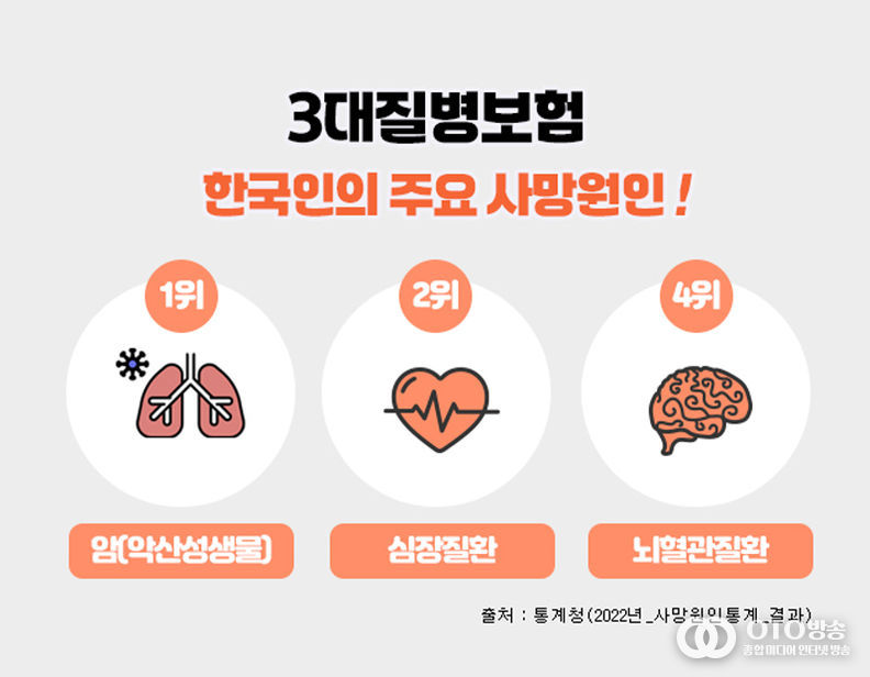 oto방송 김민석 기자 | 3대질병으로 일컬어지는 암, 뇌혈관질환, 심혈관질환은 한국인의 주요 사망원인에서 상위를 차지하고 있으며, 이에 대한 진단비를 집중적으로 보장해 주는 보험상품을 3대질병진단비 보험이라 할 수 있다.