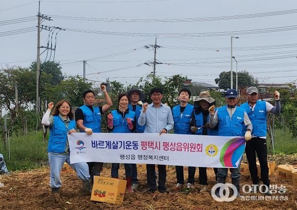 oto방송 김민석 기자 | 평택시 바르게살기운동 팽성읍 위원회는 지난달 30일 팽성읍 남산리 77-14 텃밭에서 ‘이웃사랑 고구마 수확 행사’를 진행했다.