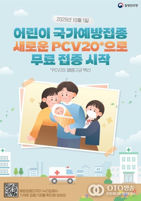oto방송 김민석 기자 | 질병관리청은 10월 1일부터 폐렴구균 국가예방접종에 신규 백신인 20가 단백결합백신(PCV20)을 도입해 접종을 시작한다.