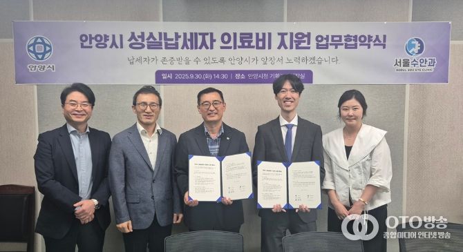 oto방송 김민석 기자 | 안양시는 지난달 30일 오후 2시30분 3층 기획경제실장실에서 관내 의원인 서울수안과와 ‘성실납세자 의료비 지원’ 업무협약을 체결했다고 1일 밝혔다.