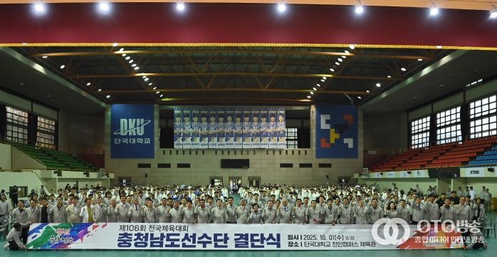 oto방송 김민석 기자 | 충남도는 1일 단국대 천안캠퍼스 체육관에서 ‘제106회 전국체육대회 충남선수단 결단식’을 열고, 대회 출전에 대한 결의를 다졌다.