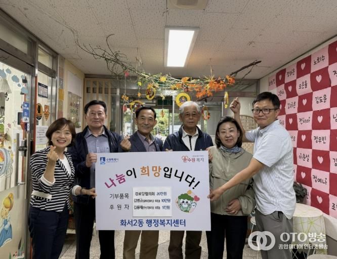 oto방송 김민석 기자 | 수원특례시 화서2동은 지난 10월 2일, 화서2동 경로당협의회가 민족 대명절 추석을 앞두고 지역의 어려운 이웃을 위해 현금 20만원을 기부했다고 밝혔다.