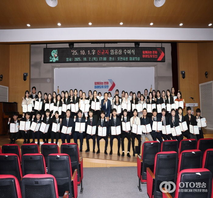 oto방송 김민석 기자 | 오산시는 지난 10월 2일 오산시청 대회의실에서 2025년 신규 임용 공직자 52명을 대상으로 임용장 수여식을 개최했다고 밝혔다.