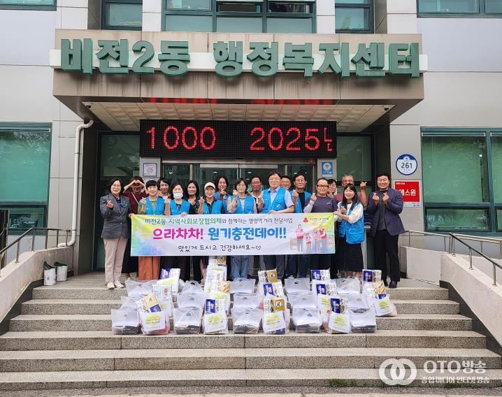 oto방송 김민석 기자 | 평택시 비전2동 지역사회보장협의체는 지난 2일 지역 내의 홀로 사는 어르신 및 저소득 위기가정 15가구에 추석맞이 명절 먹거리를 전달하는 ‘으라차차 원기충전데이’를 추진했다.
