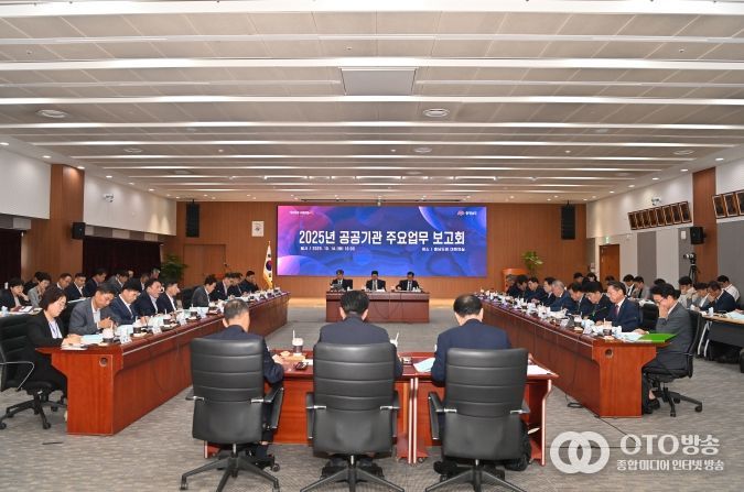 oto방송 김민석 기자 | 충남도는 14일 도청 대회의실에서 김태흠 지사와 행정부지사, 실·국장, 공공기관장 등 20여 명이 참석한 가운데, ‘2025년 공공기관장 주요 업무 보고회’를 개최했다.