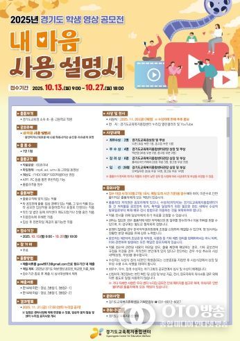 oto방송 김민석 기자 | 경기도교육복지종합센터가 경기도교육청 소속 초 중 고등학교 학생들을 대상으로 ‘2025년 경기도 학생 영상 공모전’을 개최한다.