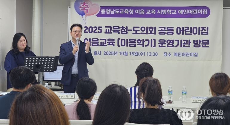 oto방송 김민석 기자 | 충남교육청은 15일, 충청남도의회 신한철 의원과 함께 천안시 예인어린이집을 대상으로 어린이집 이음교육(이음학기) 운영 현장을 방문했다.