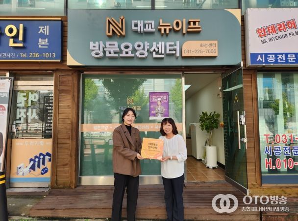 oto방송 김민석 기자 | 화성특례시가 16일 병점동 소재 대교뉴이프 방문요양센터 화성센터를 ‘치매극복 선도단체’로 신규 지정하고 현판 전달식을 가졌다.