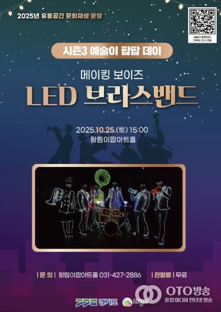 oto방송 김민석 기자 | 의왕시는 오는 10월 25일 오후 3시, 왕림이팝아트홀(의왕시 왕곡로 74)에서 금관악기 앙상블과 첨단 엘이디(LED) 조명 기술을 결합한 융복합 공연‘엘이디(LED) 브라스밴드’를 선보인다고 밝혔다.
