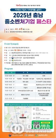 oto방송 김민석 기자 | (재)충남테크노파크(원장 서규석)는 도내 중소벤처기업의 혁신 성장과 상생 네트워크 강화를 위해 '2025 충남 중소벤처기업 페스타'를 28일 충남북부상공회의소 10층 대회의실에서 개최한다고 밝혔다.
