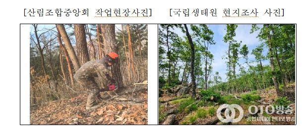 또한, 작업현장 사진과 현지조사 사진을 비교한 결과, 큰나무 위주의 간벌로 인해 식생이 단순화되고 산림 구조가 훼손된 정황이 확인됐다.