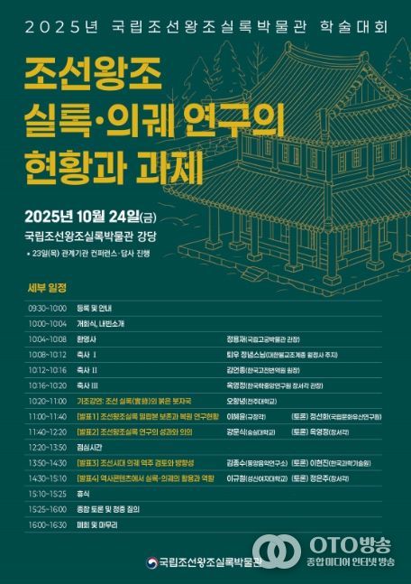 oto방송 김민석 기자 | 국가유산청 국립고궁박물관 국립조선왕조실록박물관은 10월 23일부터 24일까지 실록박물관 등 강원도 평창 일원에서 ‘조선왕조실록·의궤 연구의 현황과 과제’를 주제로 학술행사를 개최한다.