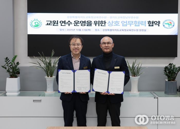 oto방송 김민석 기자 | 경기도교육청남부연수원이 23일 강원특별자치도교육청교육연수원과 교원 연수 협력을 위한 업무협약(MOU)을 체결했다.