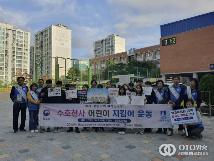 oto방송 김민석 기자 | 수원시 장안구는 법무부 청소년 범죄예방위원 장안지구위원회 주관으로 지난 23일 한일초등학교 정문에서 학교폭력 예방 캠페인을 실시했다.
