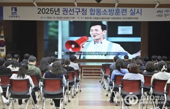 oto방송 김민석 기자 | 수원시 권선구는 지난 28일 수원남부소방서(서둔119안전센터)와 권선구 직원들과 함께 공공기관 합동소방훈련을 실시했다.