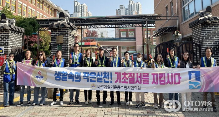 oto방송 김민석 기자 | 수원시 영통구 바르게살기운동협의회는 지난 11월 7일, 매탄동 산남초등학교 앞에서 ‘기초질서 확립 캠페인’을 실시했다. 이는 일상 속에서 질서와 배려를 실천하는 시민 문화를 조성하고, 더불어 깨끗하고 안전한 생활환경을 만들어가기 위한 취지다.