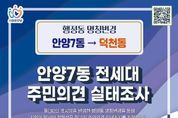 oto방송 김민석 기자 | 행정동 명칭 변경 사업을 추진 중인 안양시가 만안구 안양7동의 행정동 명칭 변경을 위해 올해 12월 1일부터 내년 1월 31일까지 해당 동 전 세대를 대상으로 주민의견 실태조사를 실시한다고 1일 밝혔다. 이번 주민의견 실태조사는 안양7동의 행정동 명칭을 ‘덕천동’으로 변경하는 것에 대한 찬반 의견 조사다. 안양7동에 거주하는 전체 세대 중 60% 이상이 참여하고, 참여 세대의 과반수가 찬성할 경우 시는 명칭 변경을 추진할 예정이다. 조사방법은 올해 12월 1일부터 2026년 1월 31일까지 시 홈페이지를 통해 비대면 조사를 진행하고, 12월 18일부터 2026년 1월 31일까지 안양7동 행정동명칭변경추진위원회가 각 세대 방문조사를 병행하게 된다. 덕천(德泉)동은 어린이들이 샘물 솟듯이 씩씩하게 자라서 나라에 큰 일꾼이 되기를 바라는 뜻으로, 큰 덕(德)에 샘 천(泉)을 취해 붙여진 옛 지명이다. 시는 이에 앞서 지난 9월 12일부터 9월 30일까지 안양7동 주민들을 대상으로 행정동 명칭에 대한 선호도 조사를 진행했고, 조사에 참여한 646세대의 주민 중 52.