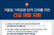 oto방송 김민석 기자 | 겨울철 가축질병 방역 강화를 위한 긴급 재정 지원 - 고병원성 조류인플루엔자 방역 강화를 위해 9개 시·도*에 재난안전특교세 30억 원을 지원 *광주, 세종, 경기, 충북, 충남, 전북, 전남, 경북, 경남 - 이번 지원은 고병원성 조류인플루엔자가 지속적으로 발생하는 지역의 소독약품 구입, 거점소독시설 및 이동통제초소 운영 등 보다 강화된 현장 방역활동을 지원하기 위해 결정 - 행안부는 지난해 11월 24일에 14개 시·도에 고병원성 조류인플루엔자 확산 방지를 위한 재난안전특교세 50억 원을 지원했으며 이번까지 포함하면 총 80억 원을 지원