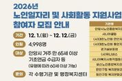oto방송 김민석 기자 | 안양시가 1일부터 12일까지 건강하고 활기찬 노후를 위한 ‘2026년 노인일자리 및 사회활동 지원사업’의 참여자 4,998명을 모집한다. 참여자 규모는 유형별로 ▲노인공익활동 3,155명 ▲노인역량활용 1,106명 ▲공동체사업단 574명 ▲취업지원 163명 등이다. 노인일자리사업의 수행기관은 ▲안양시노인종합복지관 ▲비산노인종합복지관 ▲안양시니어클럽 ▲만안·동안노인지회 ▲경기실버포럼 ▲(사)위니버스 ▲시니어복지사회적협동조합 ▲만안구청 ▲동안구청 등 10곳이며, 참여자는 수행기관에서 추진하는 다양한 일자리·사회활동에 참여하게 된다. 신청 자격은 공고일(11월 27일) 기준 안양시에 주민등록이 되어 있는 어르신이다. 세부 기준은 ▲노인공익활동은 65세 이상 기초연금·직역연금 수급자(배우자 포함) ▲노인역량활용은 65세 이상(일부 유형은 60세 이상) ▲공동체사업·취업지원은 60세 이상이다. 다만, 생계급여 수급자(취업지원 제외), 건강보험 직장가입자, 장기요양등급자 등 일부 대상자는 신청이 제한된다. 희망자는 신분증과 주민등록등본 등을 지참하고 해당 수행기관 또는