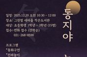 oto방송 김민석 기자 | 수원시 장안구 정자3동 그린빌새마을문고는 동지를 맞아 오는 20일 전통문화 등 다양한 프로그램을 체험할 수 있는 ‘동지야 놀자’ 행사를 개최한다고 밝혔다. 이번 행사는 오는 20일 오전 10시 30분부터 12시까지 도서관에서 진행되며, △동화구연 △작은음악회 △전래놀이 △팥죽나눔 등 다양한 프로그램이 마련됐다. 박혜경 그린빌새마을문고회장은 “이번 행사를 통해 우리 고유의 세시풍속을 자연스럽게 익히고 따뜻한 겨울 정을 느낄 수 있길 바란다”며 “앞으로도 지역 주민과 함께하는 작은도서관이 될 수 있도록 노력하겠다”고 말했다.