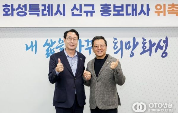 oto방송 김민석 기자 | 화성특례시가 배우 이기영, 가수 유미, 가수 정하영을 신규 홍보대사로 위촉했다고 3일 밝혔다. 이날 시청 중앙회의실에서 열린 위촉식에서 정명근 화성특례시장은 세 명의 신규 홍보대사에 직접 위촉장을 전달하며, 시민과 더 가까이에서 화성특례시의 매력을 함께 알려달라고 당부했다. 이번 신규 위촉은 드라마, 대중음악 등 다양한 문화콘텐츠 분야에서 활발히 활동하며 대중에게 친근하고 신뢰감 있는 이미지를 쌓아온 인물들을 홍보대사로 위촉함으로써 도시 브랜드의 가치와 인지도를 한층 높이기 위해 추진됐다. 배우 이기영은 1984년 데뷔한 베테랑 연기자로, 영화 ‘말아톤’, 드라마 ‘이상한 변호사 우영우’ 등 여러 작품에 출연하며 폭넓은 연기 스펙트럼으로 사랑받고 있다. 가수 유미는 2002년 ‘사랑은 언제나 목마르다’, 2006년 영화 ‘미녀는 괴로워’의 OST ‘별’ 등 다수의 히트곡을 보유한 실력파 가수로, 현재 화성시 동탄7동에서 카페를 운영하며 시민들과 활발히 소통하고 있다. 가수 정하영은 화성시 팔탄면 출신 지역 대표 예술인으로서 (사)한국예총 화성시지회 부회장을 맡