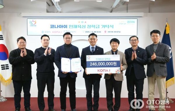 oto방송 김민석 기자 | 안양시와 코나아이, 안양시 인재육성재단이 지역 인재 육성과 지역경제 활성화를 위한 협력에 뜻을 모았다. 지난 13일 안양시청에서 각 기관 관계자들이 참석한 가운데, 지역화폐 운영을 통해 조성된 사회공헌 재원을 3년간 장학금으로 지정기탁하기 위한 업무협약 및 장학금 기탁식이 개최됐다. 이번 협약에 따라 코나아이가 지난 2022년부터 2024년까지 3년간 지역화폐 운영을 통해 조성한 2억 4천 6백만 원은‘소상공인 및 저소득층 가정’의 중·고등학생을 대상으로 하는 ‘희망장학금’으로 활용할 예정이다. 아울러, 2025년부터 2027년까지의 이윤 또한 장학금으로 기탁하기로 했다. 이는 지역화폐 운영을 통해 발생한 수익을 다시 지역사회에 환원한다는 점에서 지역경제와 인재육성을 함께 아우르는 의미 있는 사례로 평가된다. 변동훈 코나아이 부사장은 “지역화폐 운영을 통해 지역사회로부터 받은 신뢰와 성과를 다시 지역 인재 육성으로 환원하고자 이번 기탁을 결정했다”고 밝혔다. 이계삼 안양시 부시장은 “민간 기업과 공공기관이 협력해 지역 인재 육성에 함께 나서는 뜻깊은 사례”라며