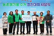 oto방송 김민석 기자 | 충남도가 농촌폐기물 수거체계 개선에 앞장서 온 우수마을을 표창하고, 그동안 추진한 사업의 성과를 공유하는 자리를 마련했다. 도는 16일 홍성문화원에서 박정주 도 행정부지사를 비롯해 송근선 한국환경공단 충청권본부 자원순환관리처장, 정해웅 농협중앙회 충남세종본부장, 이민수 한국농어촌공사 충남본부장, 성낙구 도 새마을회장, 시군 관계자 등 200여 명이 참석한 가운데, ‘2025년 농촌폐기물 수거 경진대회 시상식’을 개최했다. 도와 한국환경공단, 농협중앙회, 한국농어촌공사가 공동주최한 이날 행사는 △폐기물관리 유공자 표창 △우수마을 시상 △농촌폐기물 관리 레크리에이션 순으로 진행됐다. 심사는 지난해 11월부터 올해 10월까지 수거 실적(계량)과 수거 노력(비계량) 등을 종합해 기후에너지환경부 장관상 1곳, 한국환경공단 이사장상 4곳, 농협중앙회장상 10곳, 한국농어촌공사 사장상 3곳 등 총 18개 마을을 선정했다. 특별상인 한국농어촌공사 사장상은 폐비닐 발생량이 적은 소규모 마을에도 동기를 부여하기 위해 전년 대비 향상도가 높은 마을을 선정해 시상했다. 영예의