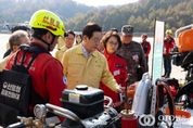 oto방송 김민석 기자 | 이재명 대통령은 6일 오후 강원도를 방문해 관·군의 산불 진화 장비와 대응체계를 점검한 뒤, 동해안 산불 위험 지역을 시찰했다. 이 대통령은 취임 직후부터 관계기관에 가용 가능한 자원을 총동원하는 등 강력한 산불 진압 초기 대응체계를 마련하라고 거듭 지시해 왔다. 이번 방문은 이러한 대통령 지시사항의 이행 상황을 직접 점검하기 위해 실시된 것이다. 이 대통령은 먼저 강원 원주시에 위치한 산림청 산림항공본부를 찾아 산림청과 군(軍)의 산불 진화 헬기, 드론, 차량 등 핵심 장비를 점검했다. 현장을 둘러본 이 대통령은 "산불이 발생했을 때 초기에 신속하게 대응할 수 있도록 현장의 1차 책임을 명확히 하라"고 지시했다. 또한 "산불 대응 관련 예산과 사업은 국민이 납득할 수 있도록 투명하고 효율적으로 운영하라"고 말하면서도, "산불 대응에 있어서는 '아깝다'고 생각하지 말고 초기부터 전력으로 대응하라"고 당부했다. 이어 이 대통령은 산림청과 국방부의 ‘산불 진화 합동훈련’을 참관했다. 훈련은 헬기 레펠을 이용한 공중 진화, 드론을 활용한 정밀 진화, 헬기 물 투하 등의 순서로