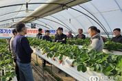 oto방송 김민석 기자 | 충남도 농업기술원은 11일 논산시 현장접목연구 실증농가에서 딸기 농가의 소득증대를 위한 ‘딸기 조기정식 후 관부냉방 기술 현장평가회’를 개최했다. 현장평가회에서는 딸기 재배농가, 연구 및 지도기관 관계자 등 200여 명이 참석한 가운데, 여름철 고온기에도 안정적으로 꽃눈분화를 유도할 수 있는 ‘조기정식 후 관부냉방 기술’의 적용성과 현장사례를 공유했다. 딸기의 과실은 일반적으로 9월 중순 꽃눈이 분화된 뒤 개화해 12월부터 본격 수확되지만, 최근 육묘하우스 시설 개선과 양분관리 기술 발달로 수확시기가 점차 앞당겨지고 있다. 조기수확이 늘어나는 이유는 출하 시기가 빠를수록 판매가격이 높아져 농가소득 증대 효과가 크기 때문이다. 그러나 꽃눈분화를 촉진하기 위해서는 하우스 온도를 낮춰야 하는데, 여름철 고온기에는 현실적으로 냉방 효율이 낮아 실용성이 떨어진다. 이를 해결하기 위해 도 농업기술원 딸기연구소는 생장점이 위치한 관부(줄기와 뿌리의 연결 부위)만을 선택적으로 냉각하는 ‘조기정식 후 관부냉방 기술’을 개발했다. 이 기술은 △8월 초 본포에 묘를 정식한 뒤
