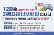 oto방송 김민석 기자 | 평택시는 2025년 12월 정기분 자동차세 16만 5천 건에 대해 199억 원을 부과·고지하고 납부 기한 내 납부하도록 적극적인 홍보에 나섰다고 밝혔다. 자동차세는 연 2회(6월, 12월) 부과하는 정기분 세목으로, 이번 제2기분 자동차세 부과 대상은 과세기준일인 12월 1일 현재 평택시에 등록되어있는 자동차, 이륜차, 건설기계 등이며, 7월 1일부터 12월 31일까지의 보유기간에 대해 차량의 용도와 차종, 배기량, 차령에 따라 세액을 차등 적용하여 부과한다. 아울러, 연세액 10만 원 이하의 경차·화물차·승합차량은 6월에 전액 과세하나 6월 이후에 취득했다면 이번 제2기분 과세 대상에 포함되며, 자동차세를 연납한 차량은 이번 과세 대상에서 제외된다. 납부 기한은 12월 16일부터 31일까지이고, 고지서는 우편 발송되며 전자고지 신청자는 전자우편 또는 모바일 앱에서 확인이 가능하다. 납부는 ‘지방세입계좌’ 서비스를 통해 이체 수수료 없이 납부할 수 있으며, 이외에도 전국 금융기관 방문 혹은 은행 자동화기기(CD/ATM) 등에서도 고지서 없이 신용카드 또는 통장으로 납부할