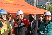 oto방송 김민석 기자 | 15일 충남 천안시 동남구 풍세산업단지 내 이랜드패션 물류센터에서 대형 화재가 발생한 가운데, 김태흠 지사가 현장을 찾아 화재 진압 상황을 점검했다. 김 지사는 이날 오후 화재 현장 인근에 설치한 충남 긴급구조통제단을 찾아 진압대원 등을 격려한 뒤, 성호선 도 소방본부장에게 화재 발생 및 진압 상황, 향후 대응 계획 등을 보고받았다. 이 자리에서 김 지사는 물류센터 내부 물품 현황, 도시가스 차단 상황, 진압 계획, 주민 통제 등을 물으며, 인력·장비 추가 투입을 지시했다. 이어 “인명 피해가 없어 천만다행”이라며 “내부에 고립 인원 등이 없는 만큼, 신중하게 판단하고 작전을 펼쳐 진화 과정에서 소방관 등이 피해를 입는 일이 없도록 하라”고 당부했다. 김 지사는 또 “건물 안에 불에 잘 타는 의류 등이 많아 진화가 더딘 것 같다”며 “큰 불은 잡은 것 같지만, 주변으로 불이 번지지 않도록 철저히 대응해 줄 것”도 강조했다. 김 지사는 이와 함께 “유해가스가 다량으로 발생하고 있는 점을 감안, 인근 주민들에게 각별히 주의해 줄 것을 안내하라”고 덧붙였다. &nb