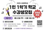oto방송 김민석 기자 | 수원문화재단은 남녀노소 누구나 악기를 배우고 즐길 수 있는 ‘수원은학교 '1인 1악기 학교'’의 수강생을 10월 10일까지 선착순으로 모집한다. ‘수원은학교 '1인 1악기 학교'’는 문화도시 조성사업의 일환으로, 시민의 문화예술 향유 기회를 확대하여 생활문화를 활성화하기 위해 추진하는 사업이다. 이번 강좌는 △대금(초급, 중급) △소금(초급, 중급) △오카리나 △칼림바 △우쿨렐레 △바이올린 등 총 8개 강좌로 구성됐으며, 공공한옥, 어린이도서관, 공연장 등 수원 전역의 다양한 문화예술 시설에서 운영된다. 수강신청은 온라인으로 가능하며, 수강료는 1개 강좌당 40,000원으로 악기연주와 문화예술에 관심이 있는 시민 누구나 신청할 수 있다. 특히 참여자를 대상으로 악기를 무료로 대여해주어, 악기를 보유하지 않은 시민도 부담 없이 강좌를 수강할 수 있다. 수원문화재단 관계자는 “평소 관심이 있던 악기를 직접 배우고 연주해 보며 일상에 예술적 감성을 더할 수 있는 계기가 되기를 기대한다”며, “악기를 처음 접하는 분들도 쉽게 참여할 수 있도록 초급과정과 악기 대여 서비스를 마련했
